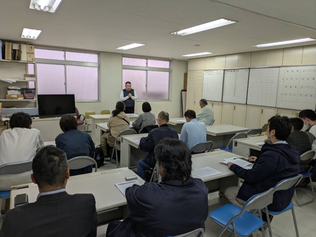 2部制に分かれ、管理者は10名 現場スタッフは18名が参加して、現状報告やリスクアセスメントの研修を受けました。